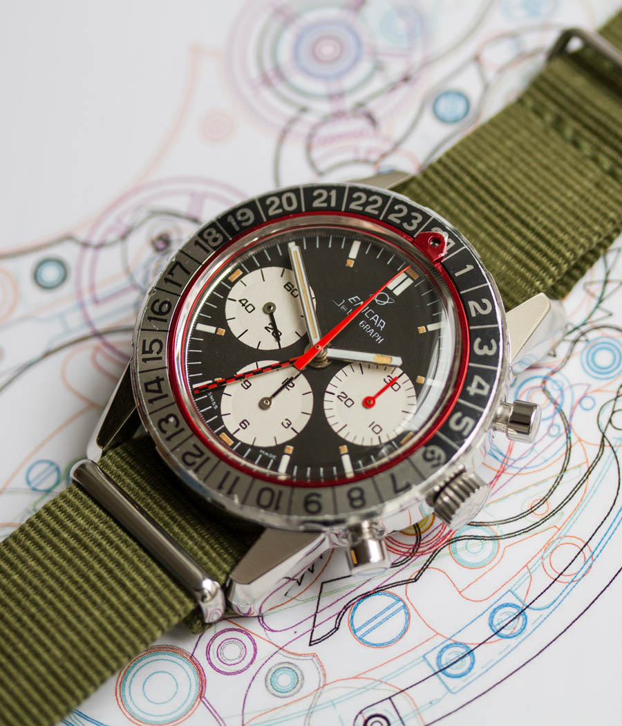 caliber Valjoux 724 GMT, second time zone, 24-hour-indicator, chronograph, manual wind