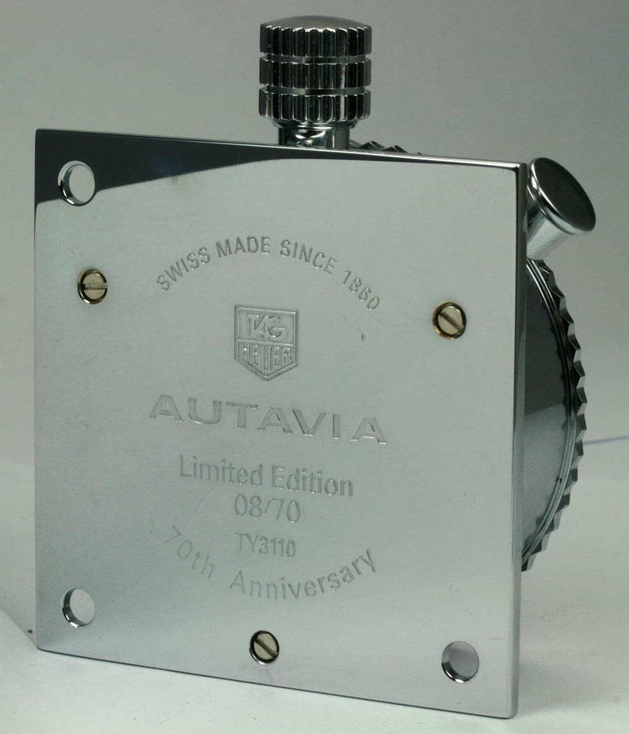 On the occasion of 40. Birthday 2003 a set of two chronografs with a limitation of 70 pieces with white dial and 70 pieces with black diial, worldwide: one wirstwatch-chrono and one dashboard-chrono 60mm,x 60mm