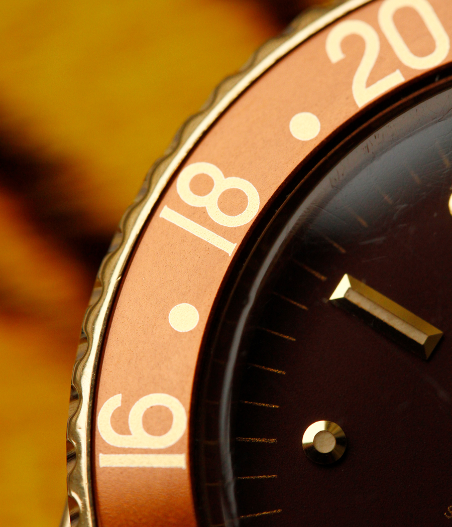 yellow-gold, acrylic glass, screwed case, screw-down crown, rotating bezel