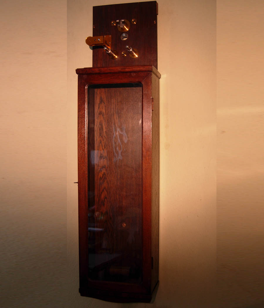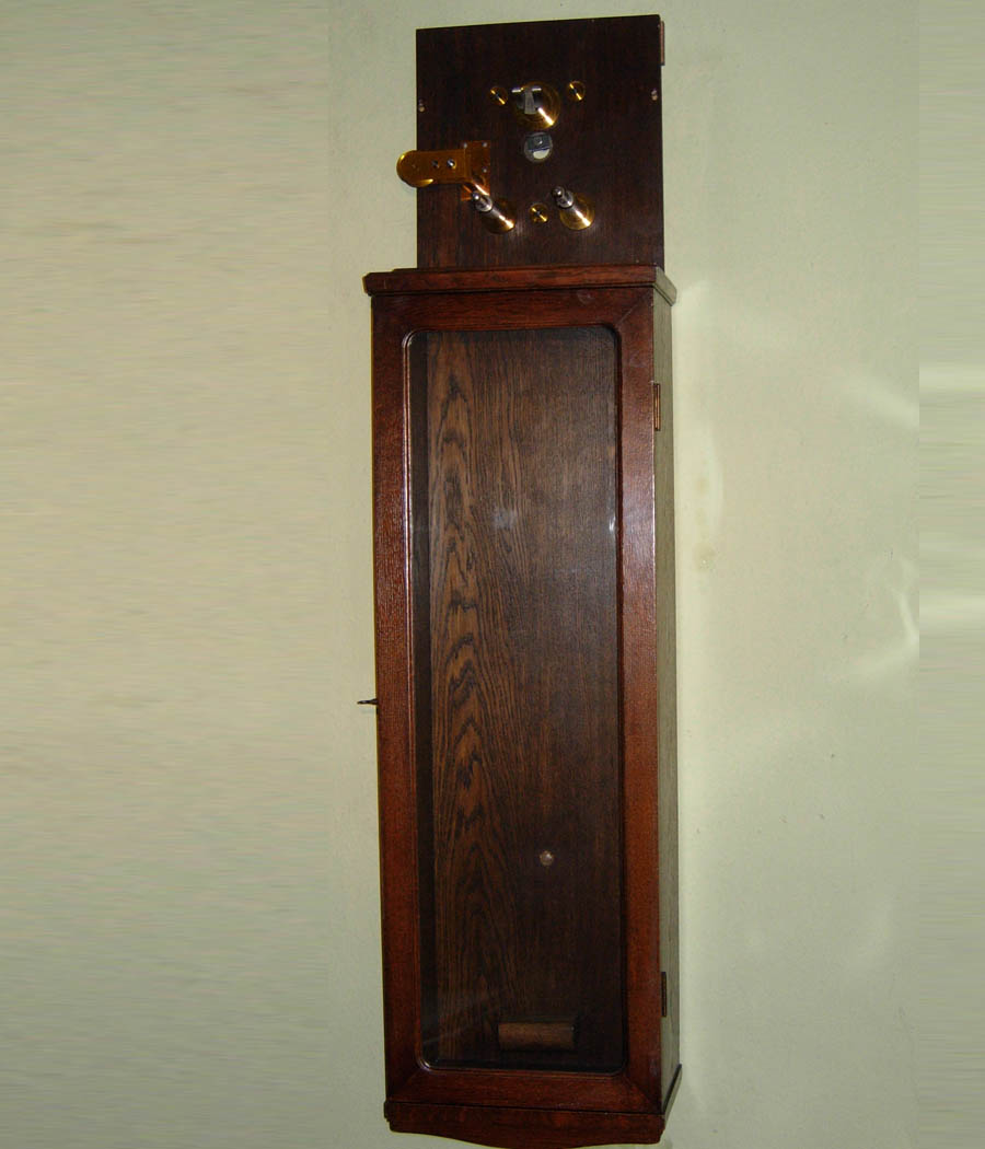 Dark Mahogany case, glazed front door.